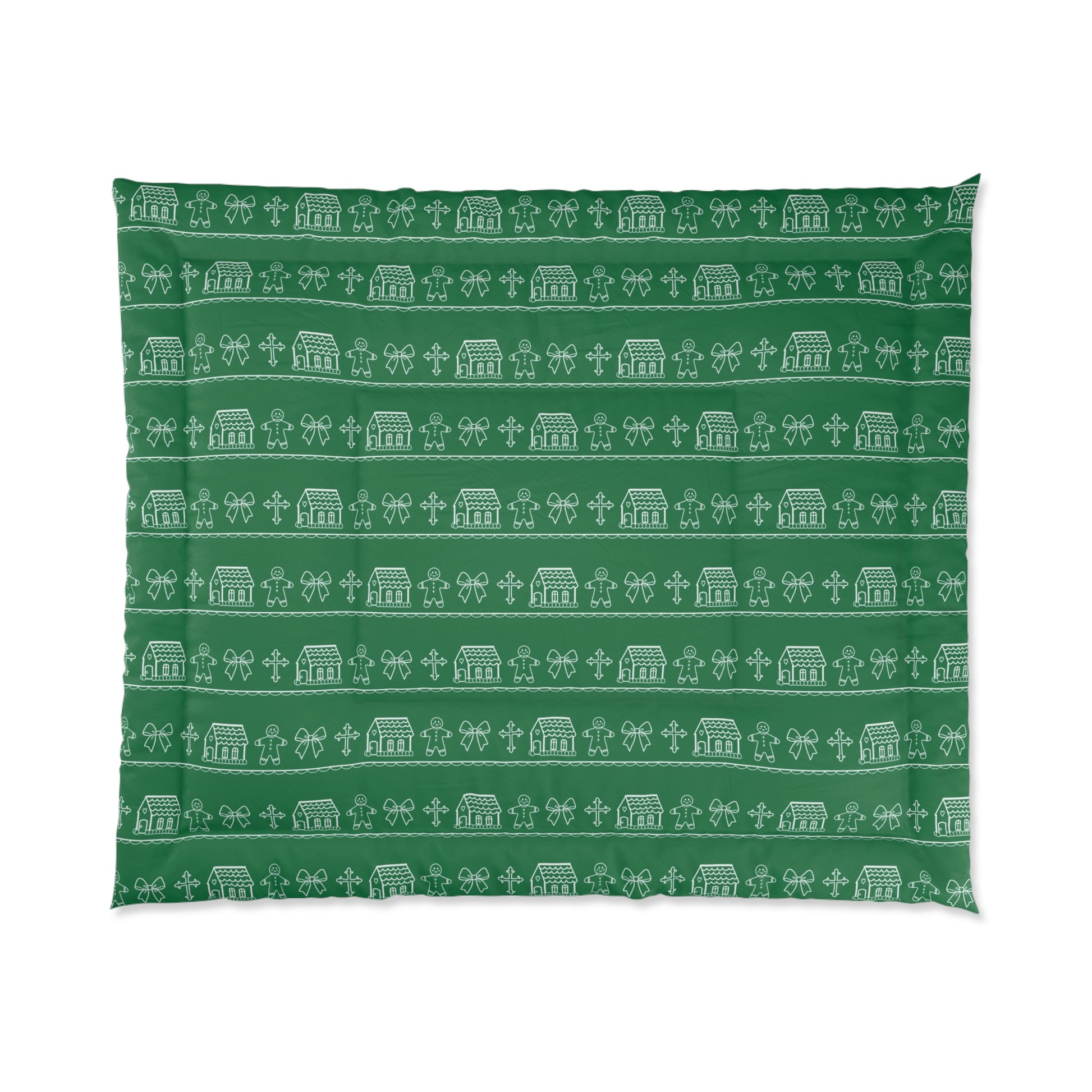 Dark Green Christmas Gingerbread Comforter