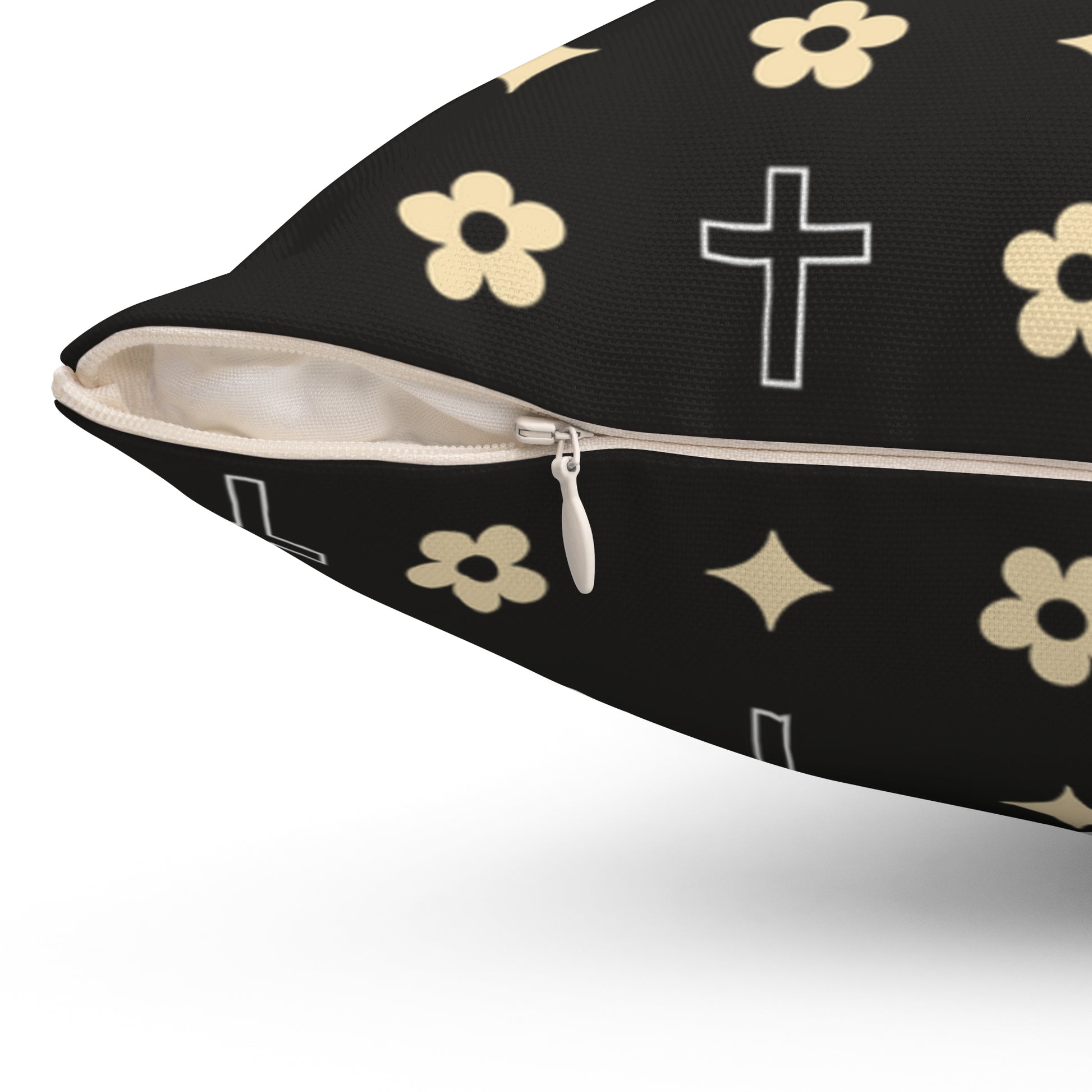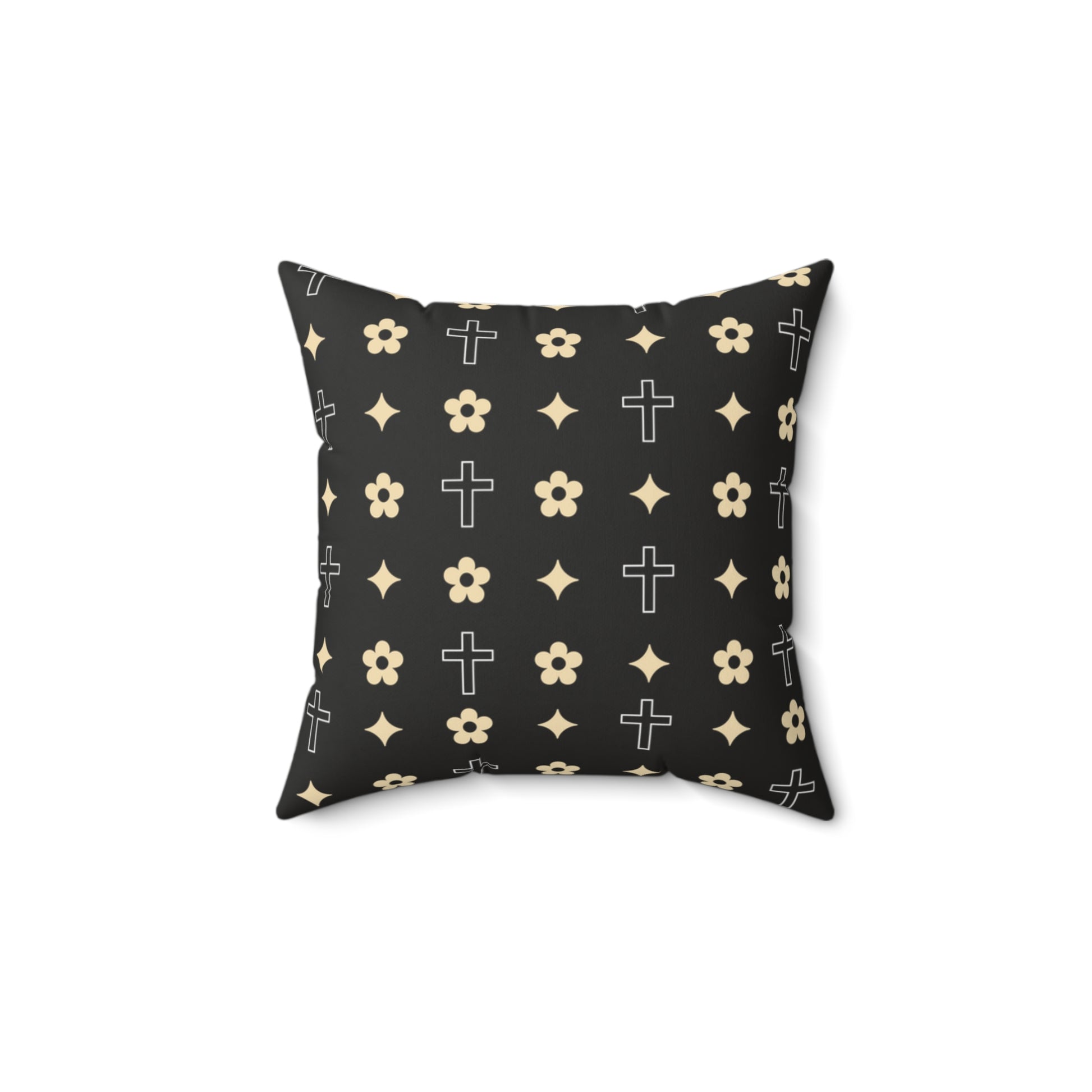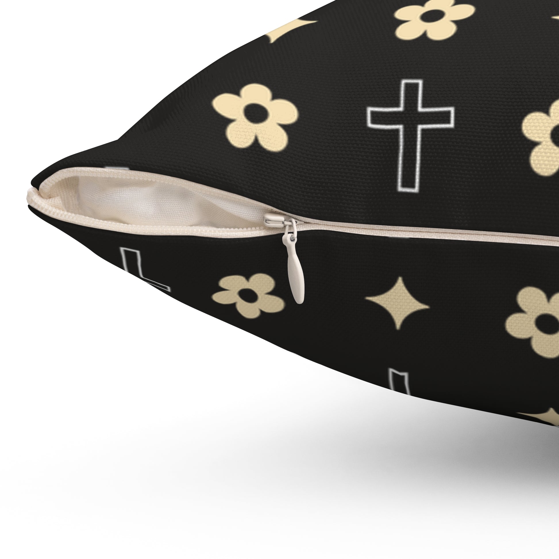 This Black and White Daisy Cross Print Decorative Throw Pillow adds a touch of charm to any room. Perfect for those who love minimalist designs and want to bring a little bit of faith into your space. This pillow is great for those who enjoy floral patterns, as this beautiful print can be easily interchanged with your decor style!