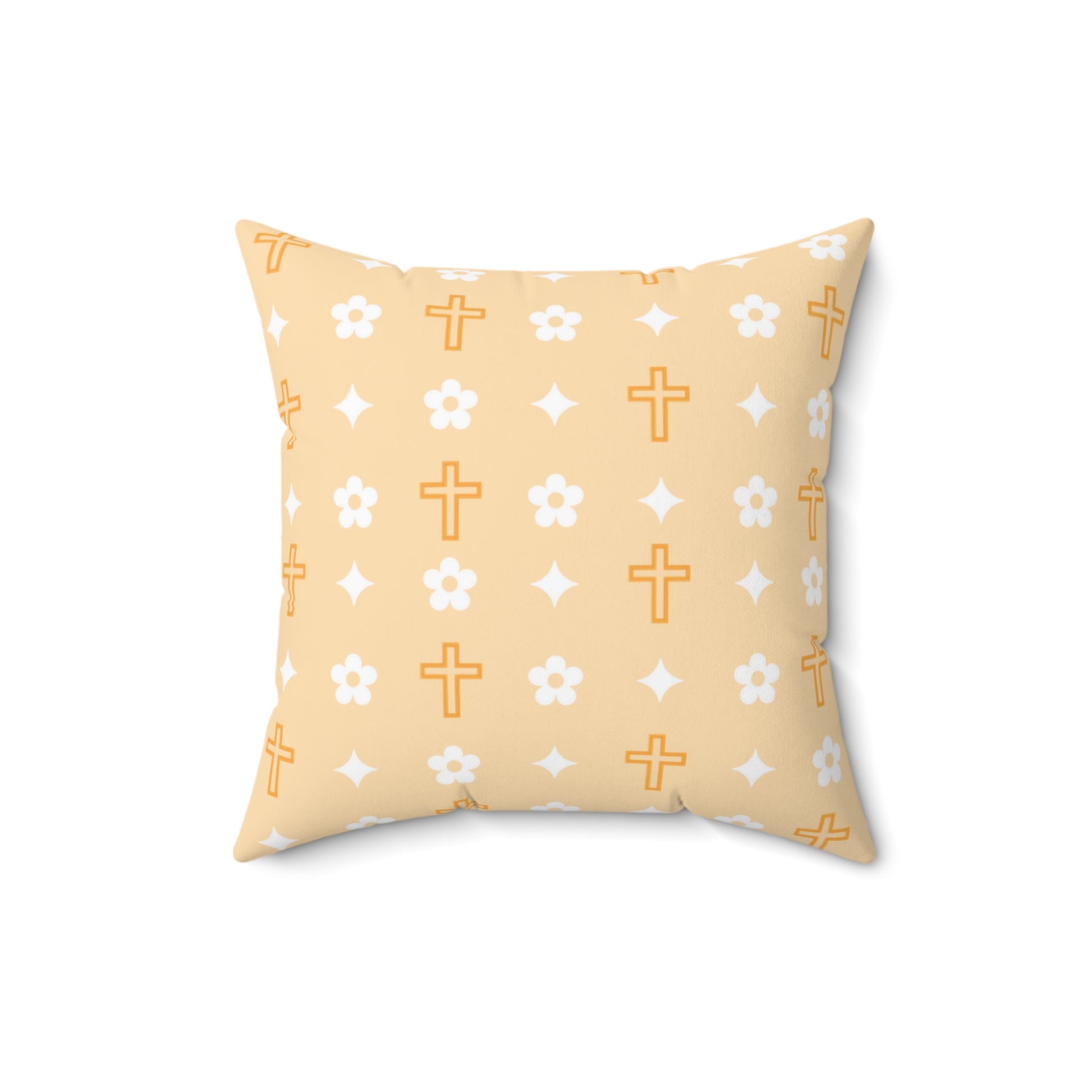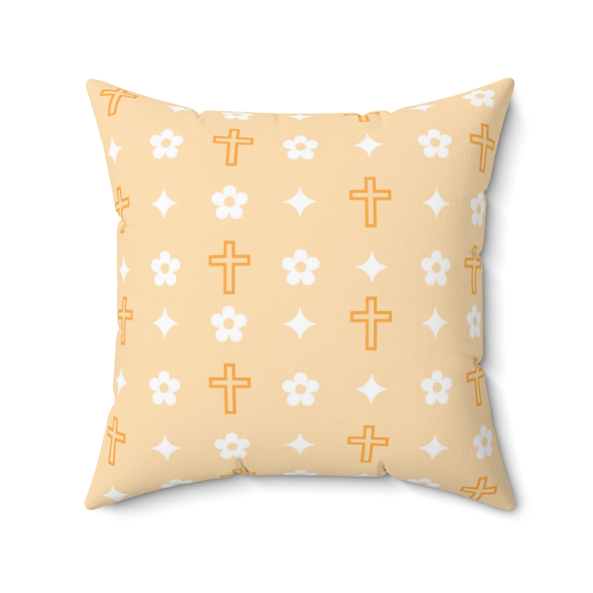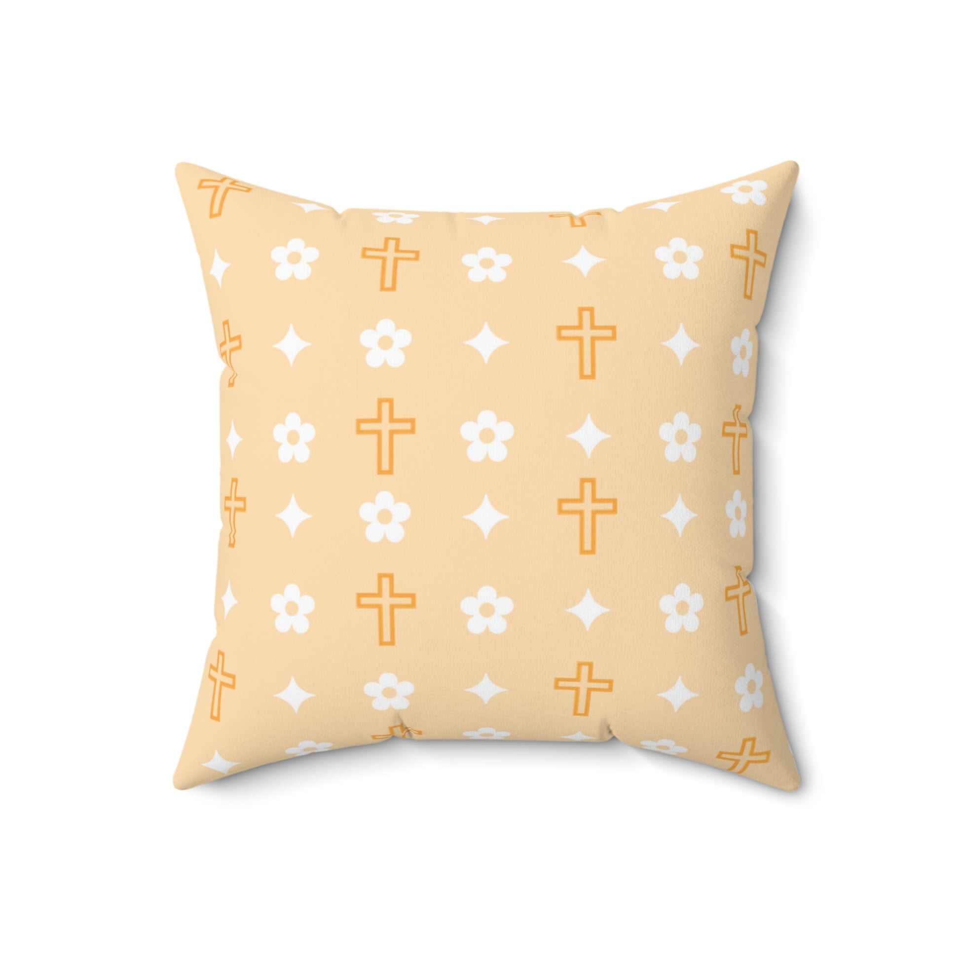 Decorative Throw Pillow - Creamsicle Daisy Cross Print