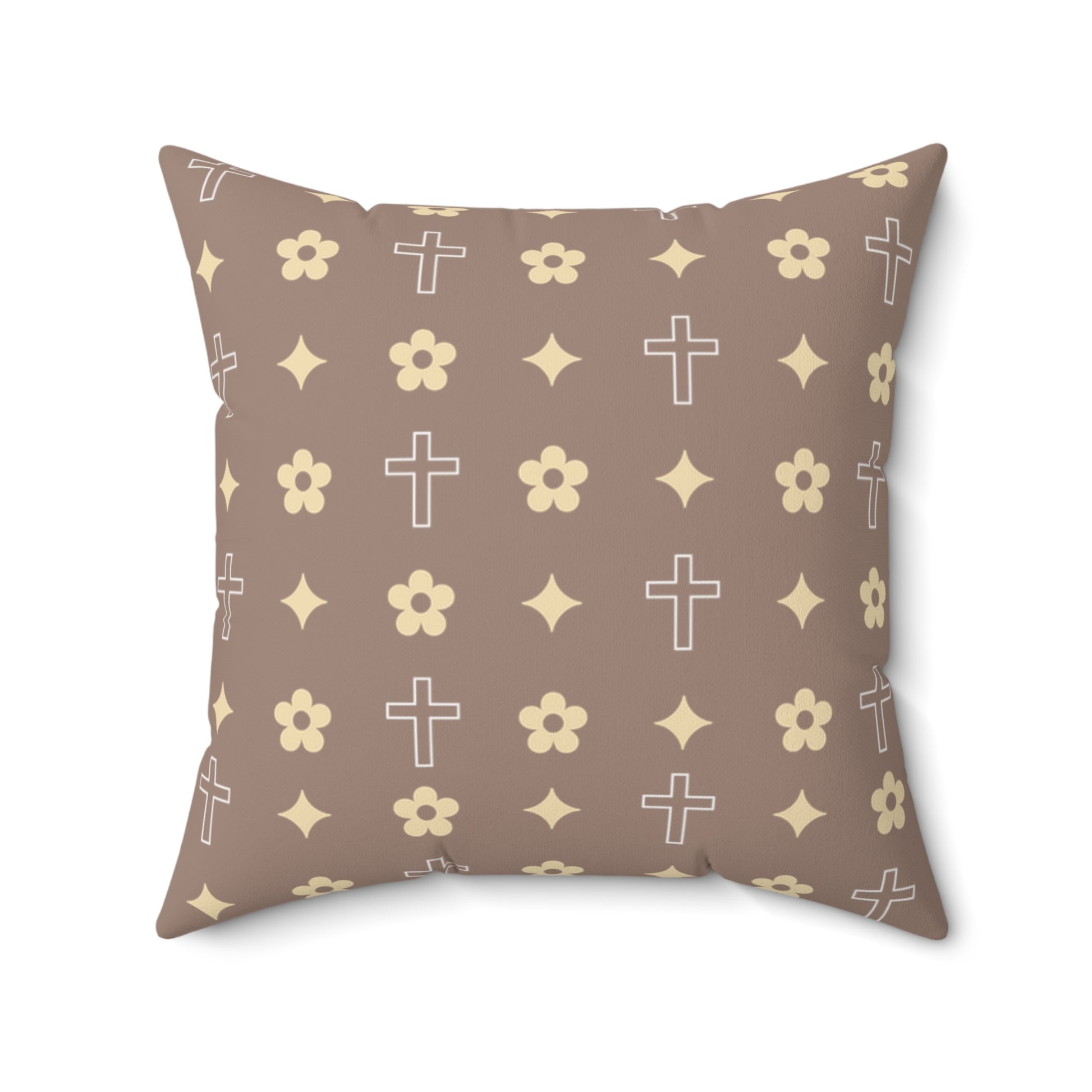 Decorative Throw Pillow - Mocha Cream Daisy Cross Print