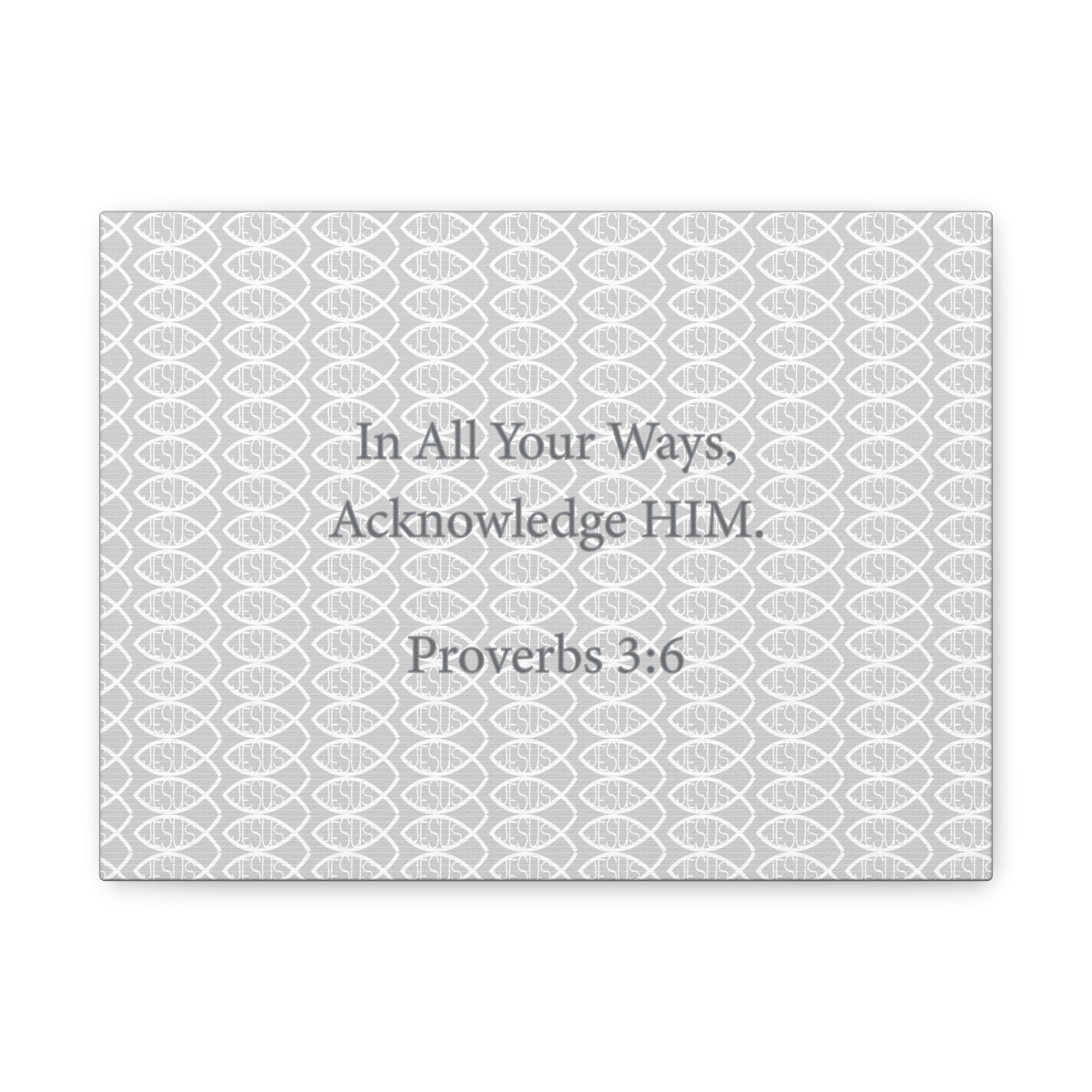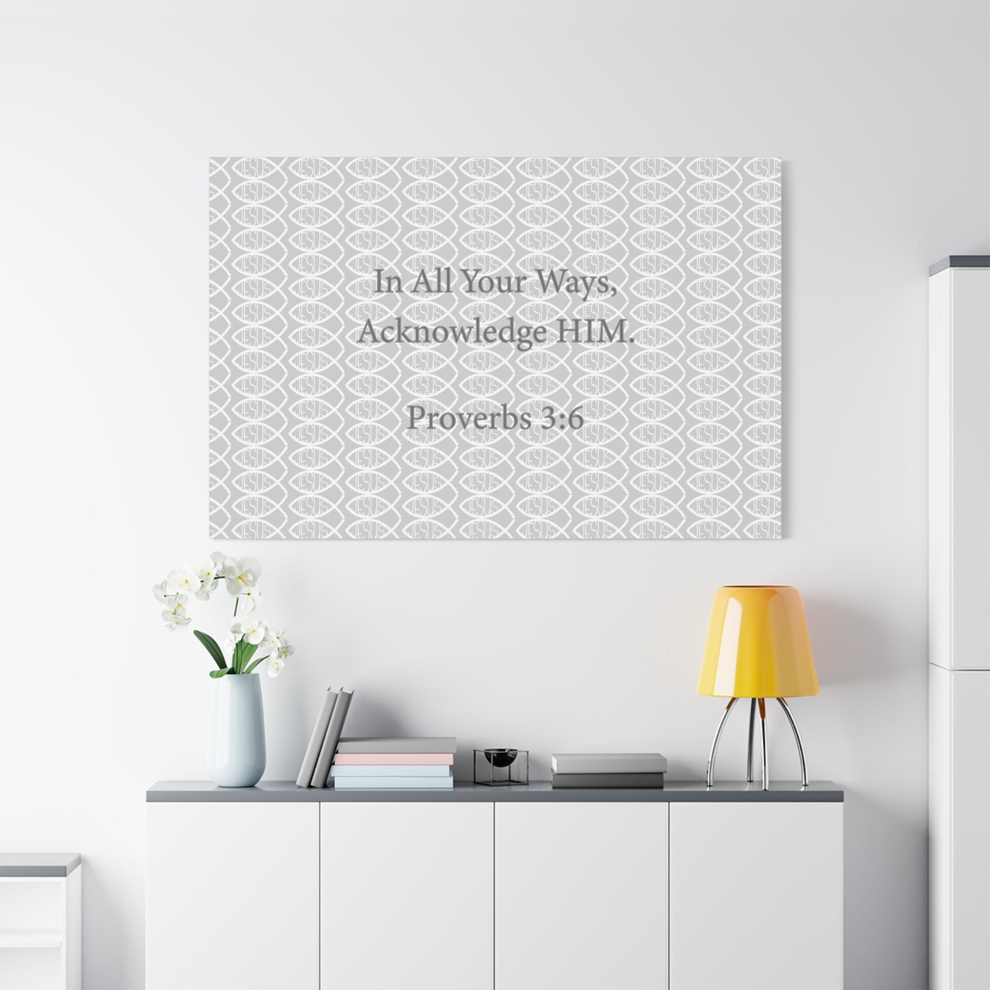 Grey and White Jesus Fish "Acknowledge Him" - Wall Art Canvas