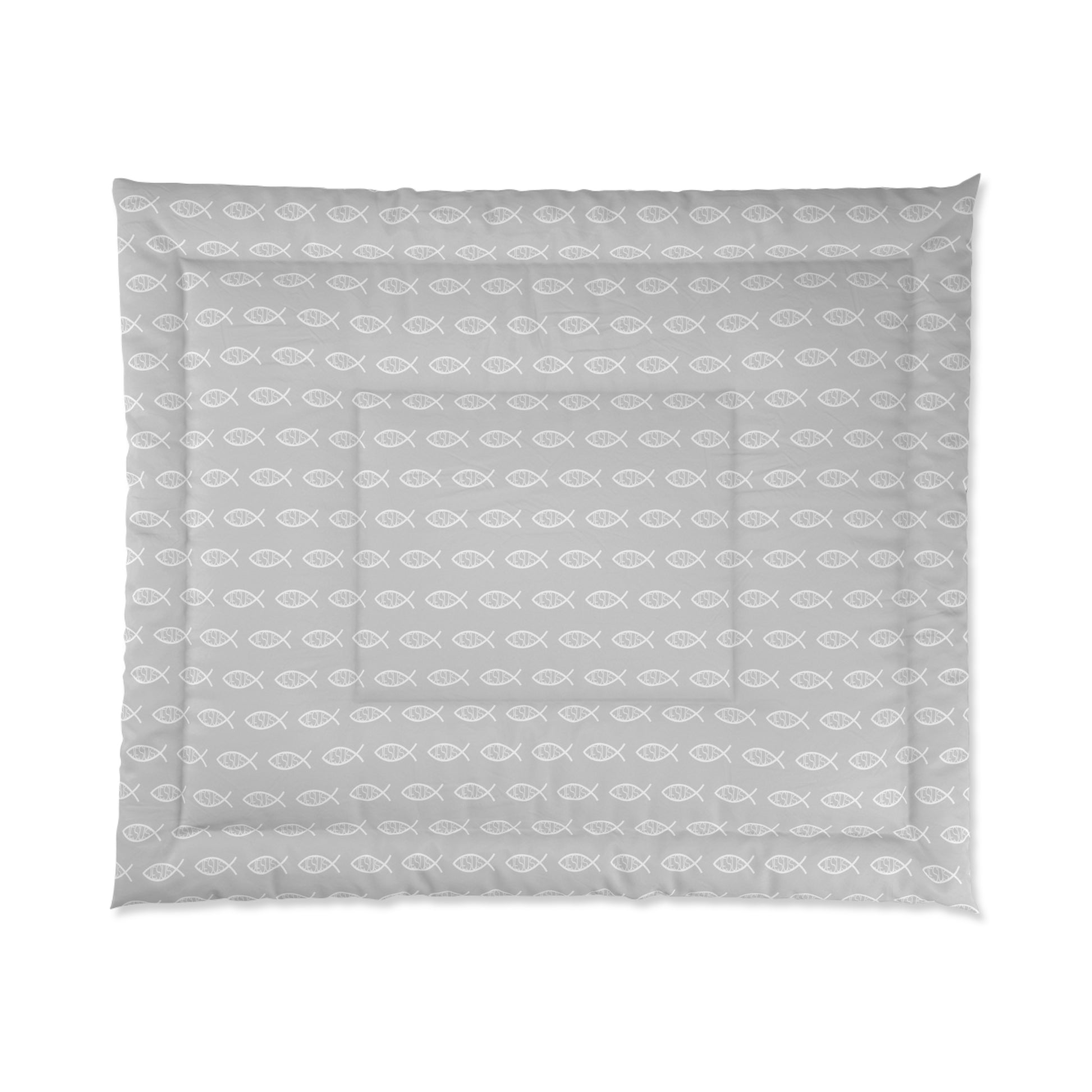 Grey and White Jesus Fish Comforter