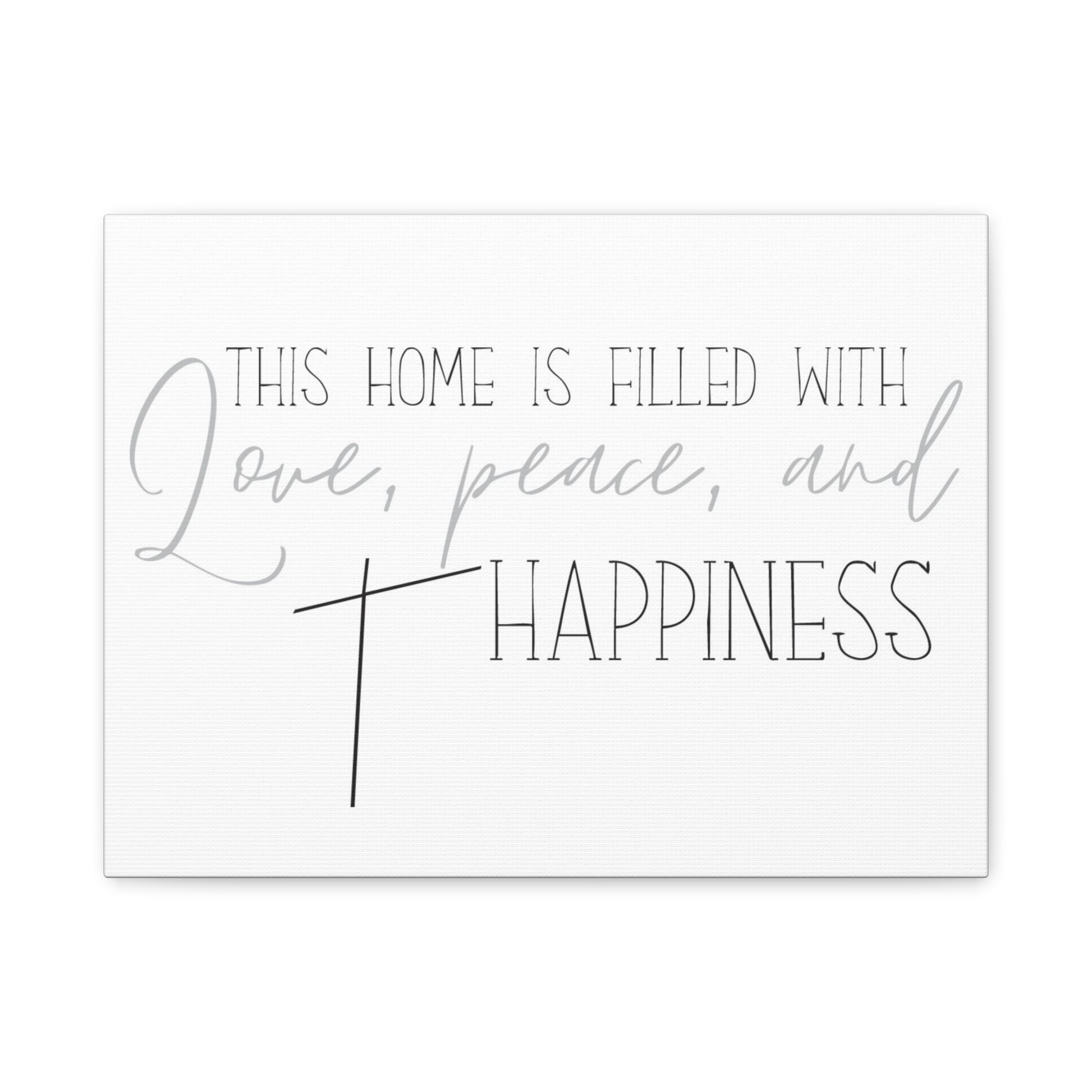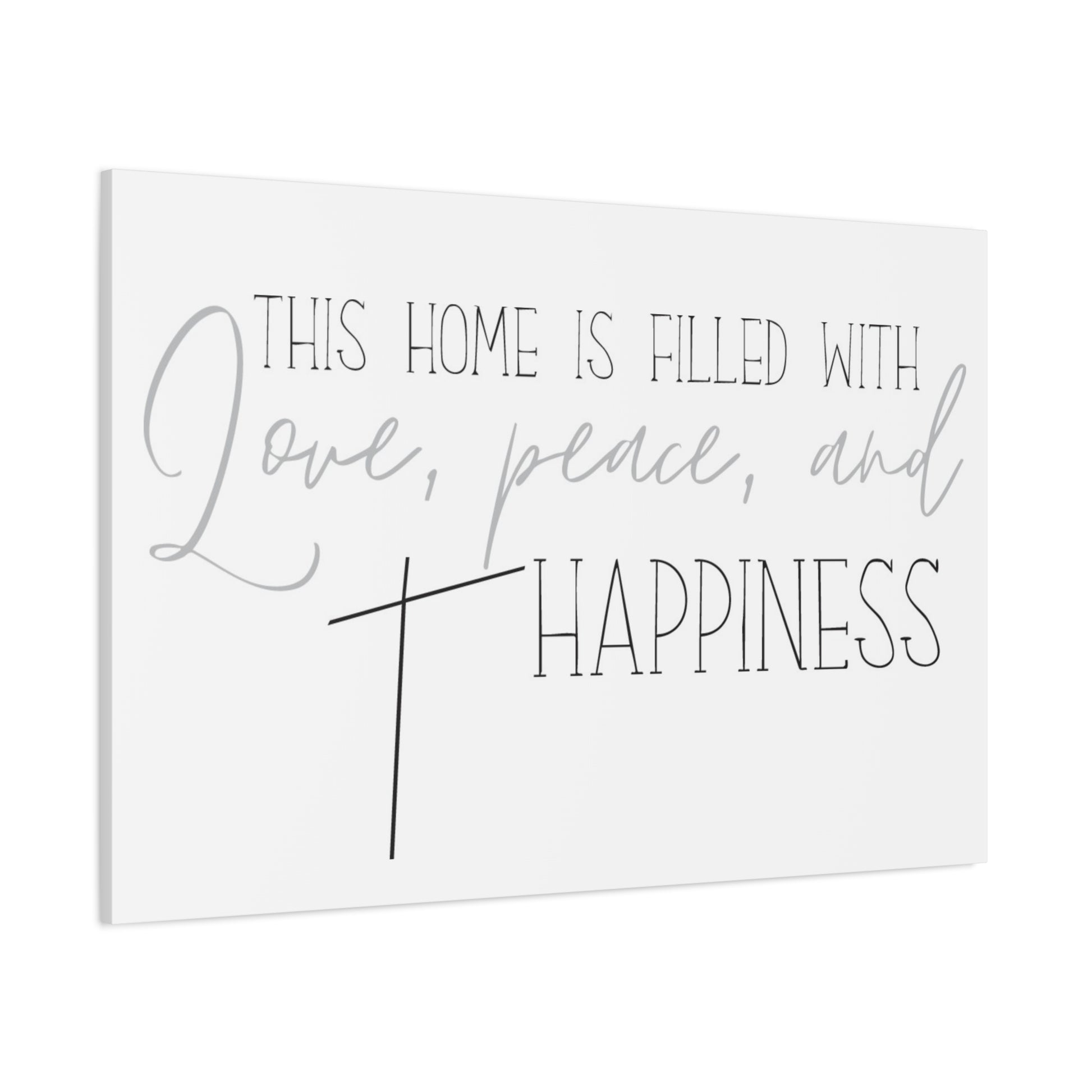 Transform your living space with this stunning matte canvas print, a perfect blend of elegance and warmth. It features the heartfelt phrase, 'This home is filled with love, peace, and happiness,' creating a cozy atmosphere that resonates with family and friends. Whether you're decorating your own home or searching for a thoughtful Christian gift, this canvas serves as a beautiful reminder of the values that matter most. Perfect for housewarming events, weddings, or holiday celebrations! This canvas print will complement any decor style, making it a versatile addition to your home.