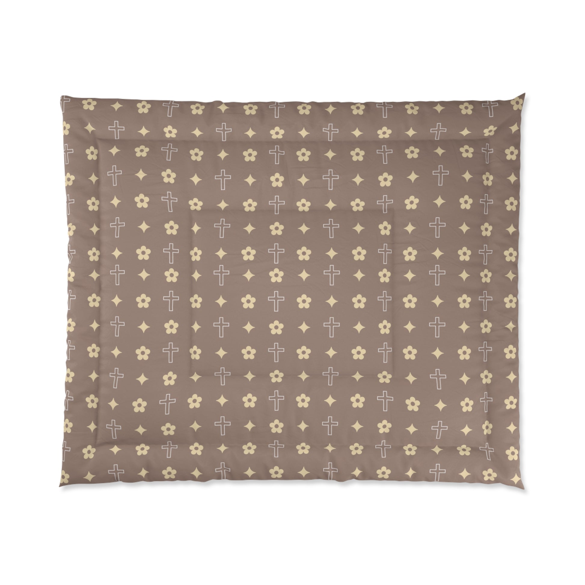 Mocha Cream Daisy Cross Print Comforter