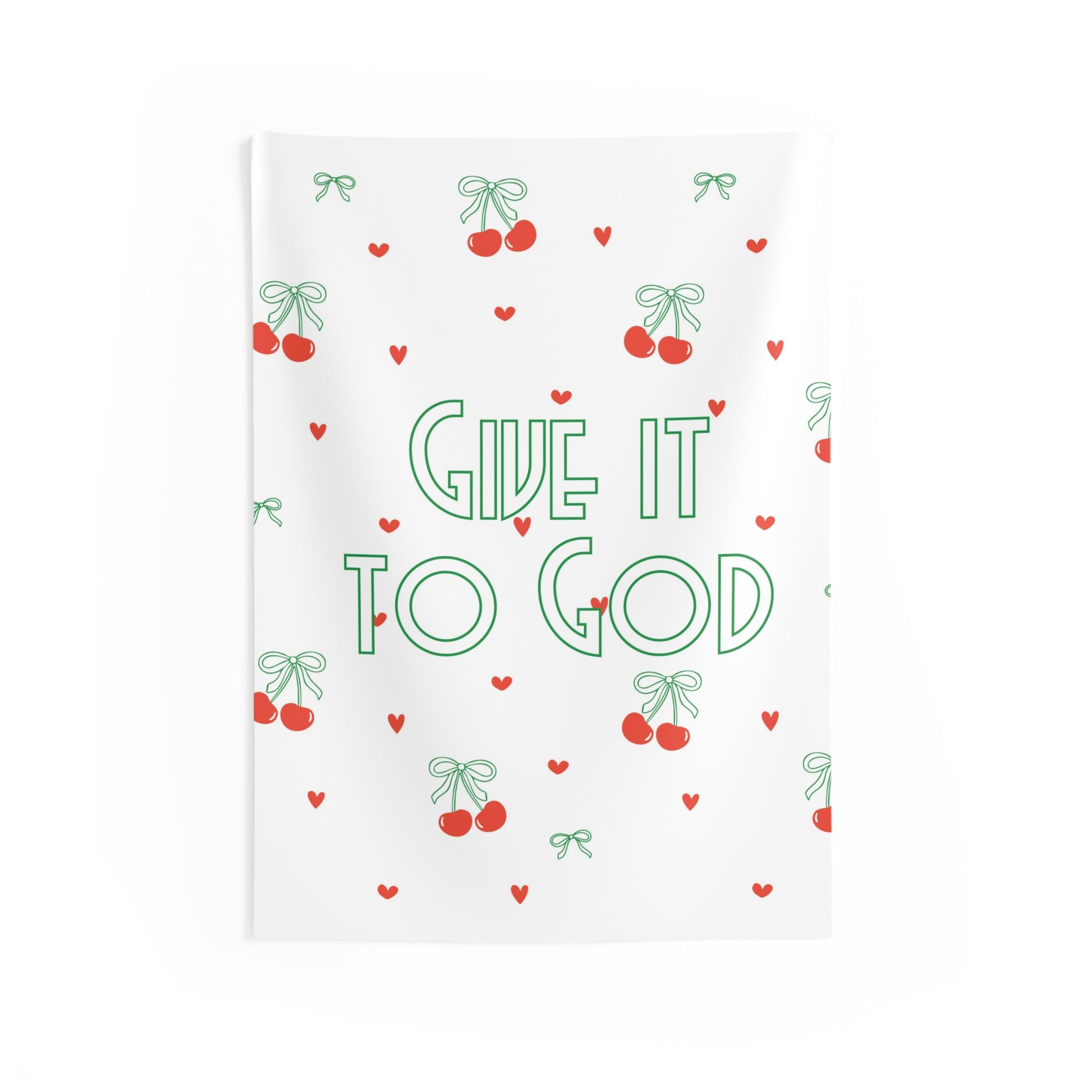 Motivational Indoor Wall Tapestry - Bows + Cherries - "Give it to God"