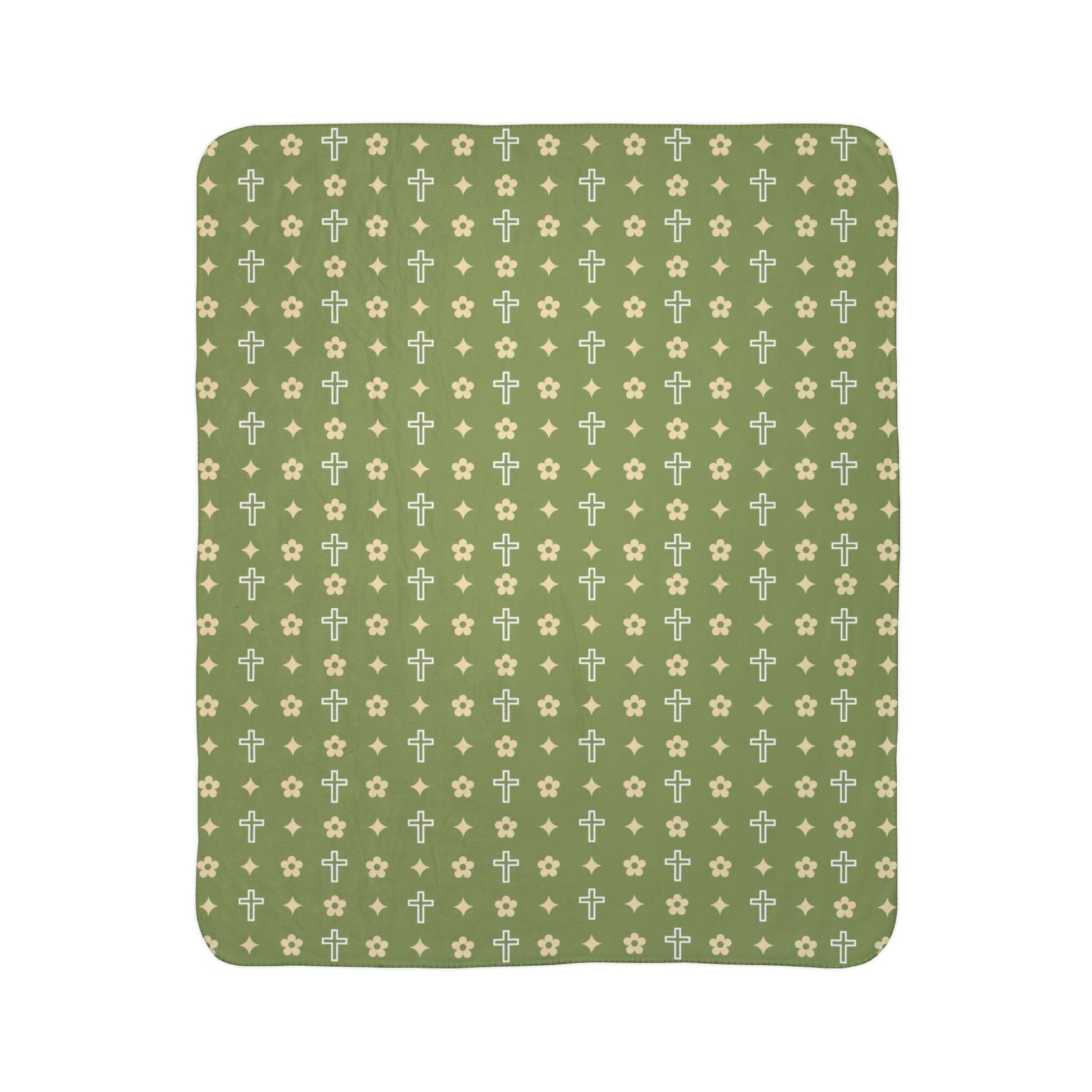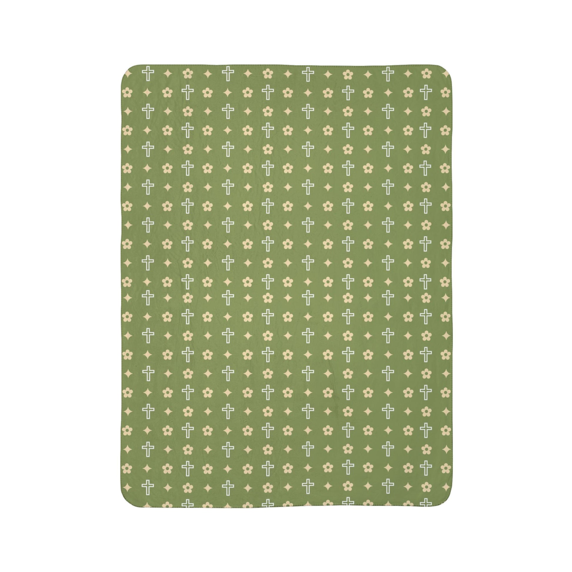 Sherpa Blanket - Cozy Fleece Army Green Daisy Print
